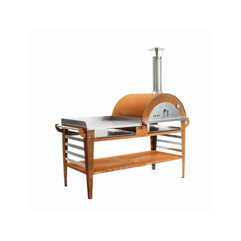 Brændefyret pizzaovn med XL bord - rustfarvet