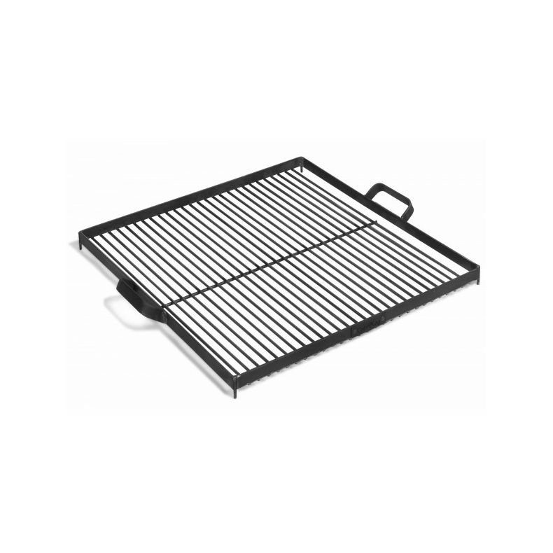 Kvadratisk grill-rist af stål med 4 håndtag, som kan anvendes på alle bålfade og let kan flyttes.