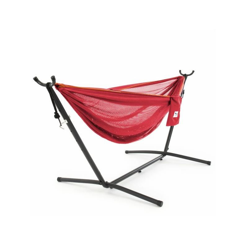 Dobbelt letvægtshængekøje i polyester på stativ. Fås i mange flotte farver.