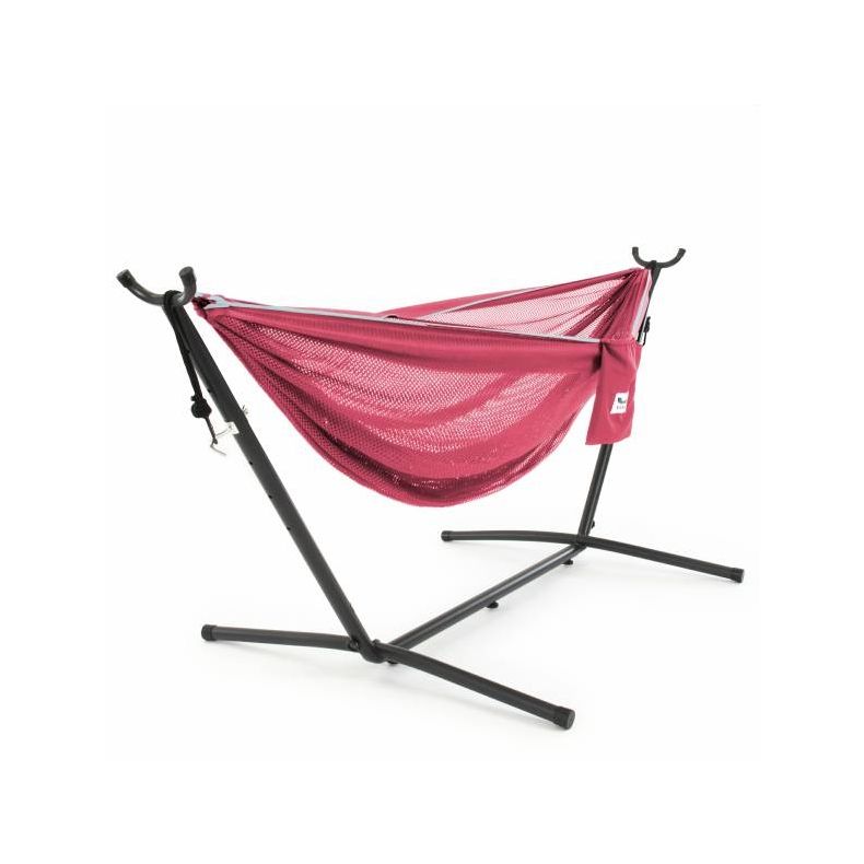 Dobbelt letvægtshængekøje i polyester på stativ. Fås i mange flotte farver.