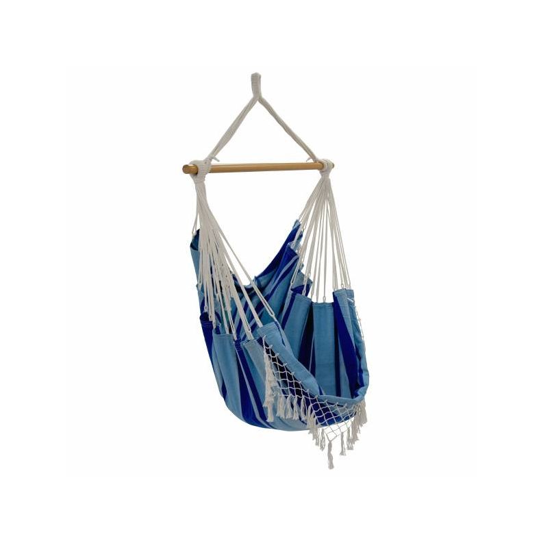 Denne brasilianske hængekøjestol er konstrueret af tætvævet 100% bomuld, hvilket gør denne til den mest afslappende stol, du vil eje. Fås nu i en række specielt udvalgte farvekombinationer med en koordinerende, håndhæklet frynser i begge ender, der tilføjer et bohemisk touch til ethvert rum. Når den er sat op, er der ekstra stof, der strækker sig op bag dig, hvilket giver dig det perfekte sted at hvile ryggen. Hængekøjestolen kan bruges både indendørs og udendørs på grund af dens lille fodaftryk og leveres med træsprederen og ekstra sejl. Kroge og fjedre sælges separat.