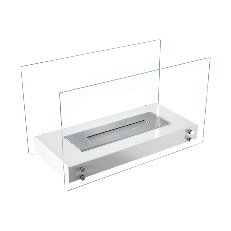Fritstående biofireplace med en enkel, elegant form. Hvis vejrforholdene er gunstige, kan det være en udsmykning af terrassen eller haven.