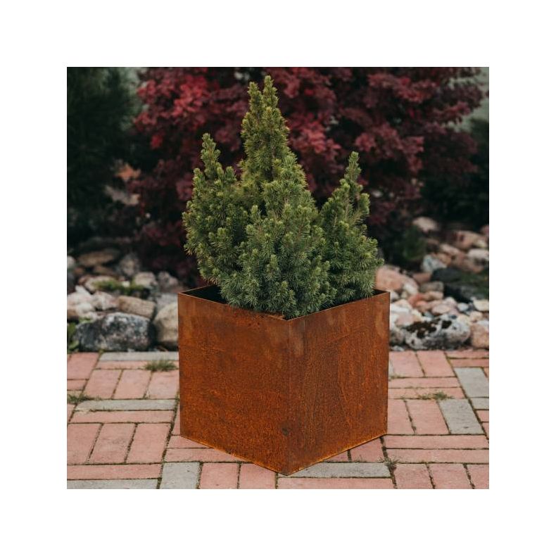 Kubisk plantekrukke i Cortenstål - størrelse medium