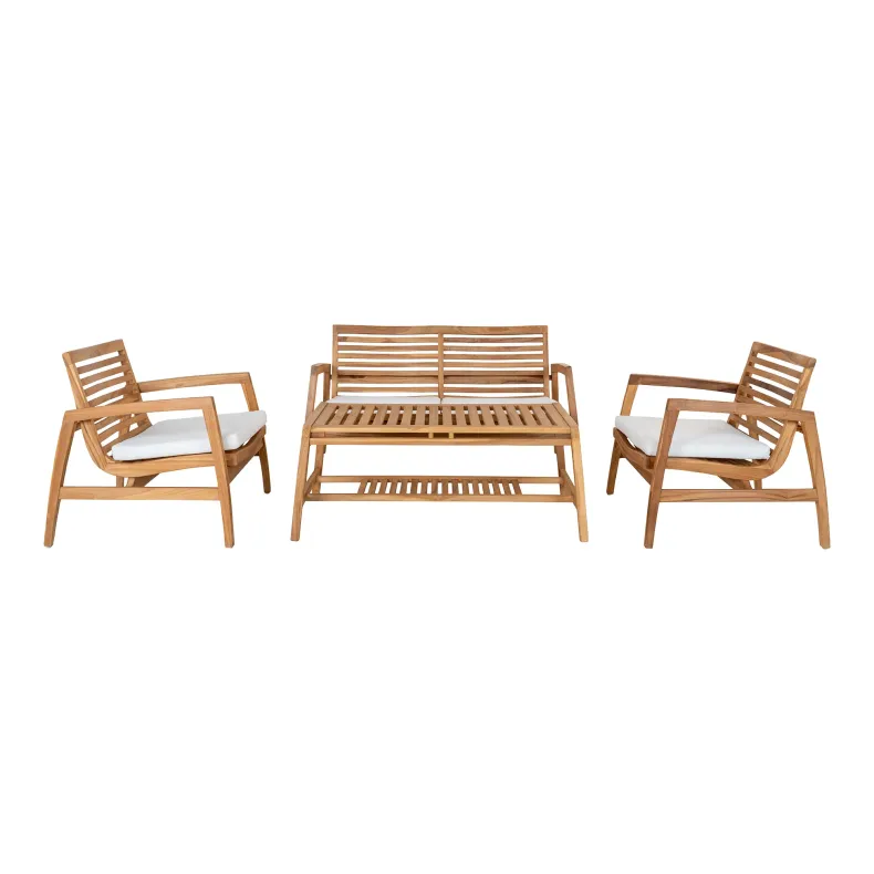 Loungesæt, teak, inkl. hynder, natur
