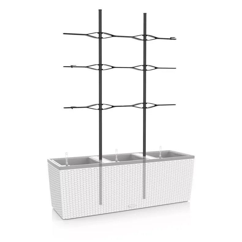 TRIO espalier er det perfekte tilbehør til dine TRIO 30 og TRIO 40 plantekasser. Det giver ikke kun støtte til dine klatreplanter, men skaber også et smukt og elegant udtryk i din have, på terrassen eller altanen. Espalieret er designet med justerbare tværbøjler og planteklips, hvilket gør det let at tilpasse efter dine planters behov.