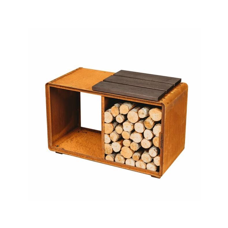 ENZO RACK medium er en kombineret brændereol og skammel, fremstillet i cortenstål.
