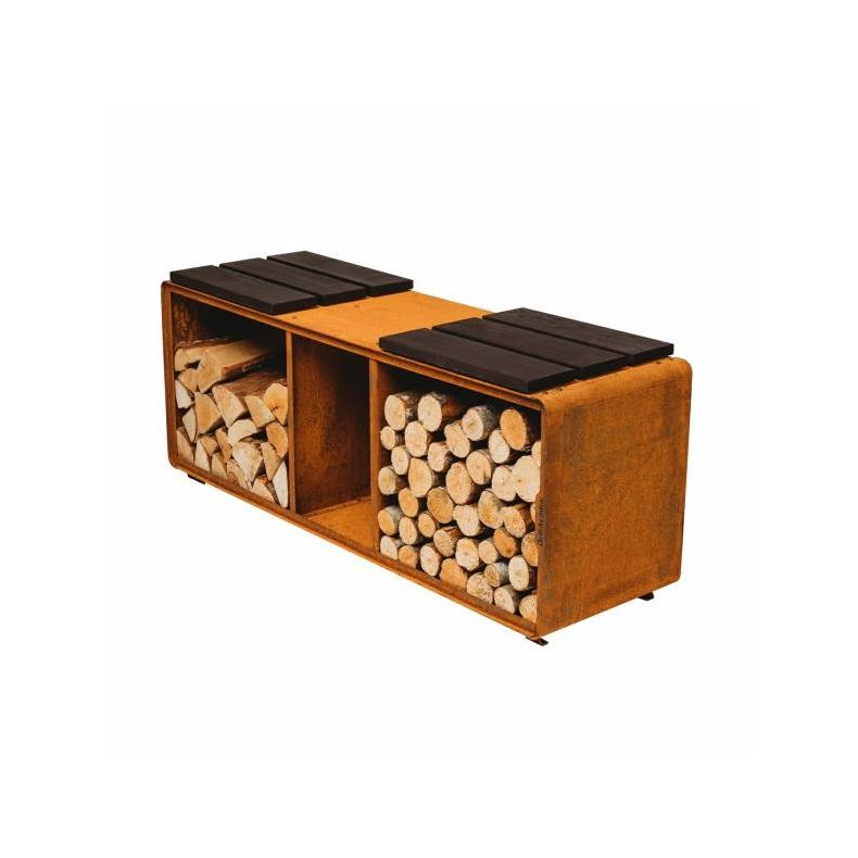 ENZO RACK large er en kombineret brændereol og skammel, fremstillet i cortenstål.
