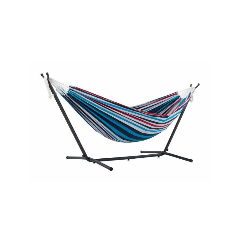 Den dobbelte hængekøje er lavet af 100% tætvævet bomuldsstof, som giver mulighed for et blødt og luftigt, åndbart stof. Polyester endestropperne bruges til at sikre en langtidsholdbar hængekøje.