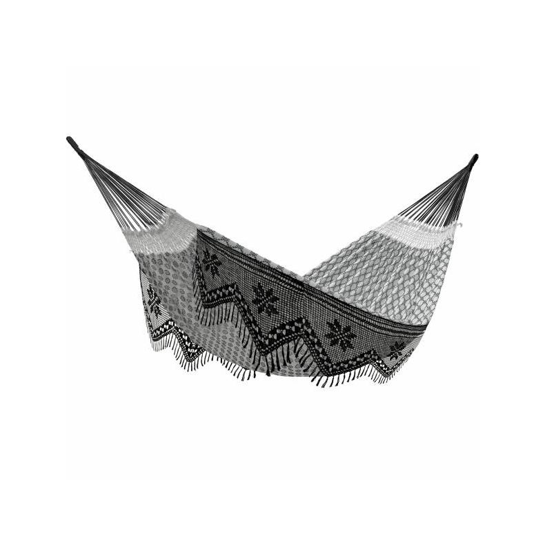 Slap af som kongelige i denne bemærkelsesværdigt brede dobbelte brasilianske bomuldshængekøje. Vævet med åndbar og luftig 100% autentisk brasiliansk bomuld og udformet med indviklede håndhæklede frynser, udstråler denne hængekøje luksus. Nyd en siesta med en ven i denne ultra store hængekøje, eller kræve al den plads til dig selv - forsørger nemt to voksne.